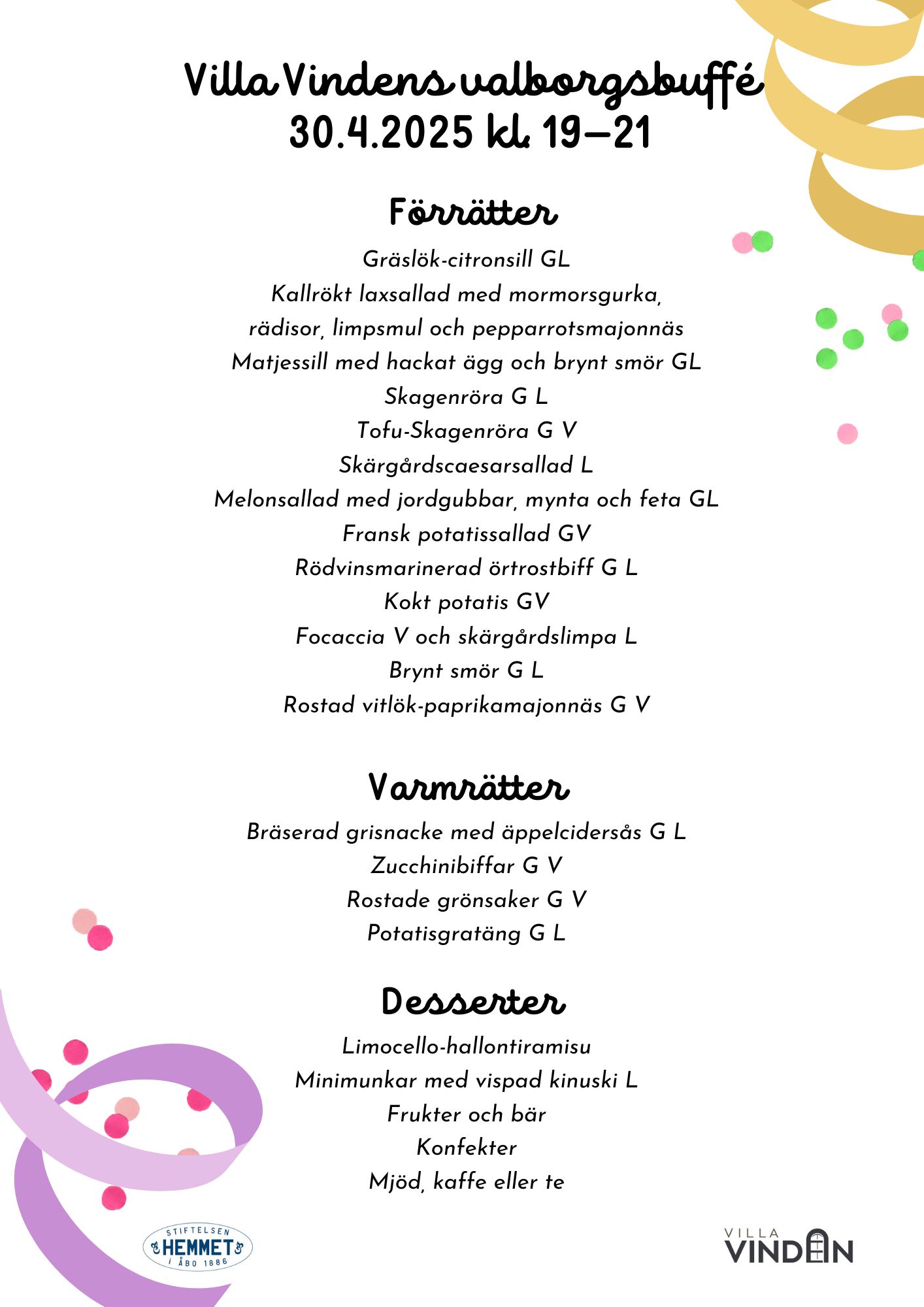 Vänligen reservera bord senast 27.4.